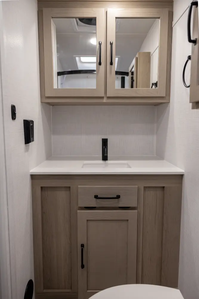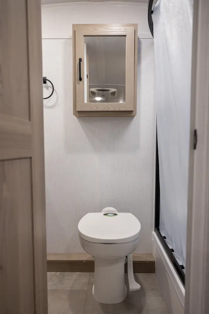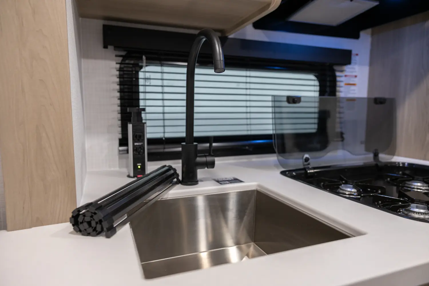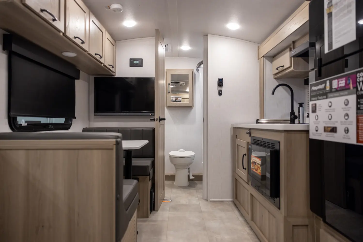 In this Flagstaff E-Pro E19FDS, you will find that the full-length bathroom and large shower in this model is the overwhelming highlight. The Murphy bed and kitchen slide in this 20’ travel trailer makes the living room in this unit so spacious. The door side dinette with a large window, gives this unit a “right at home” feel. This single axle trailer checks so many essential boxes.