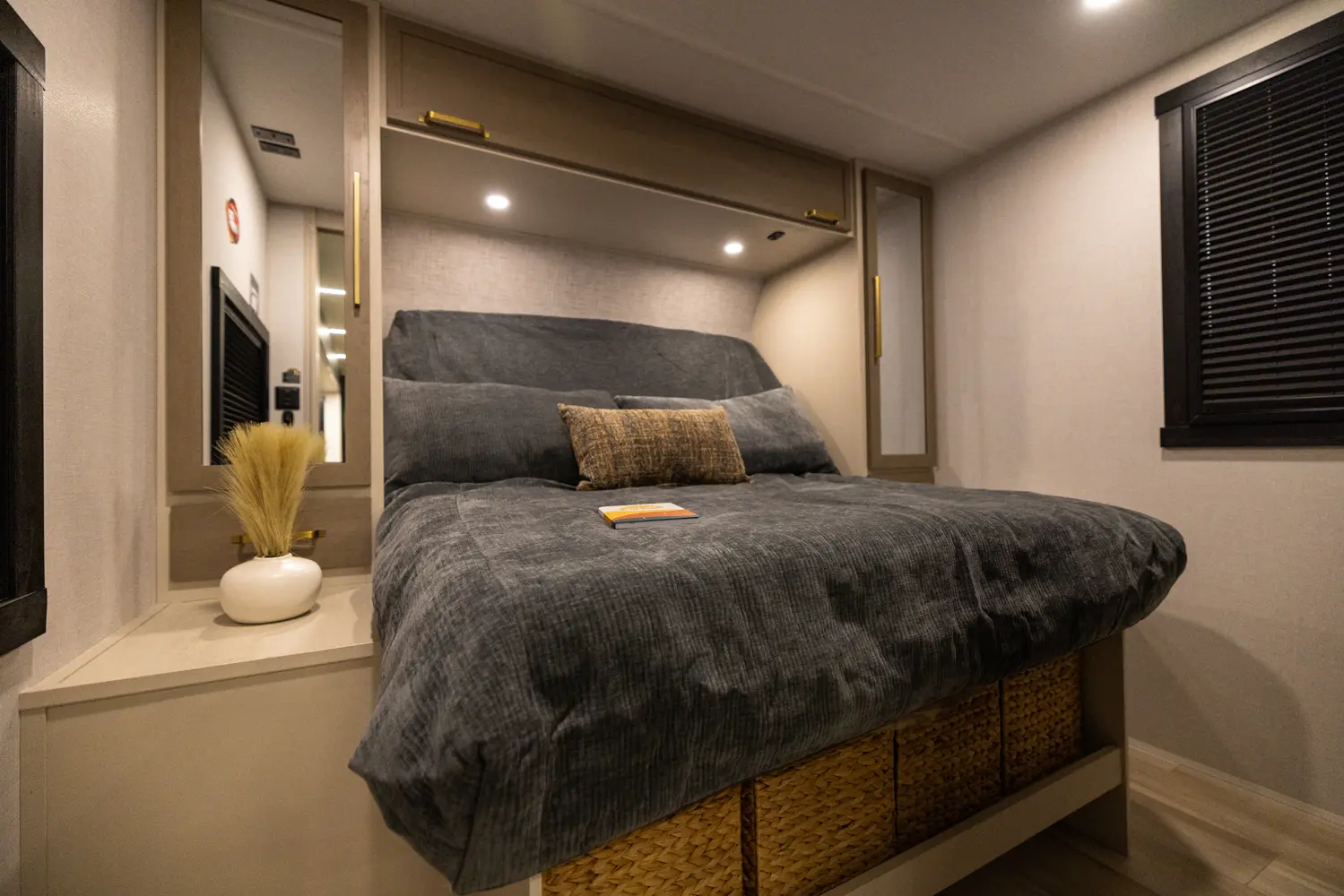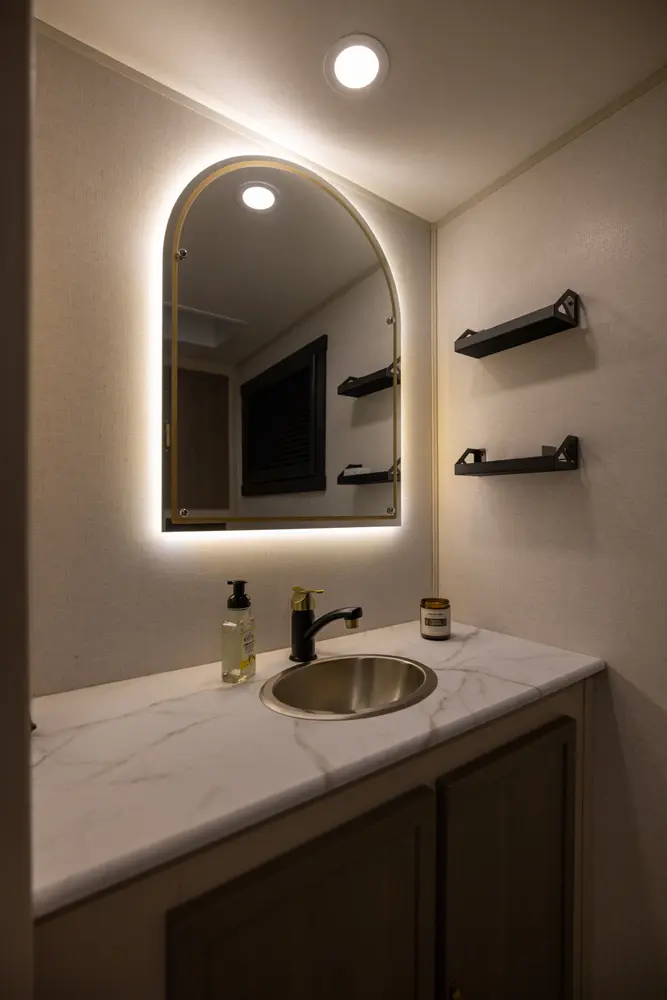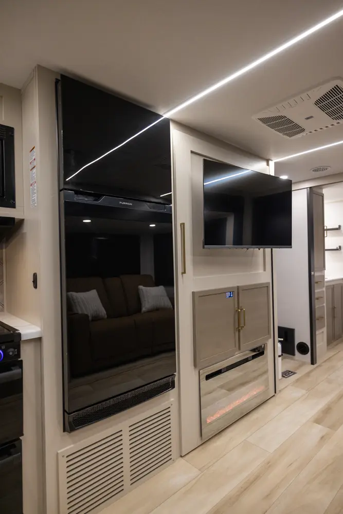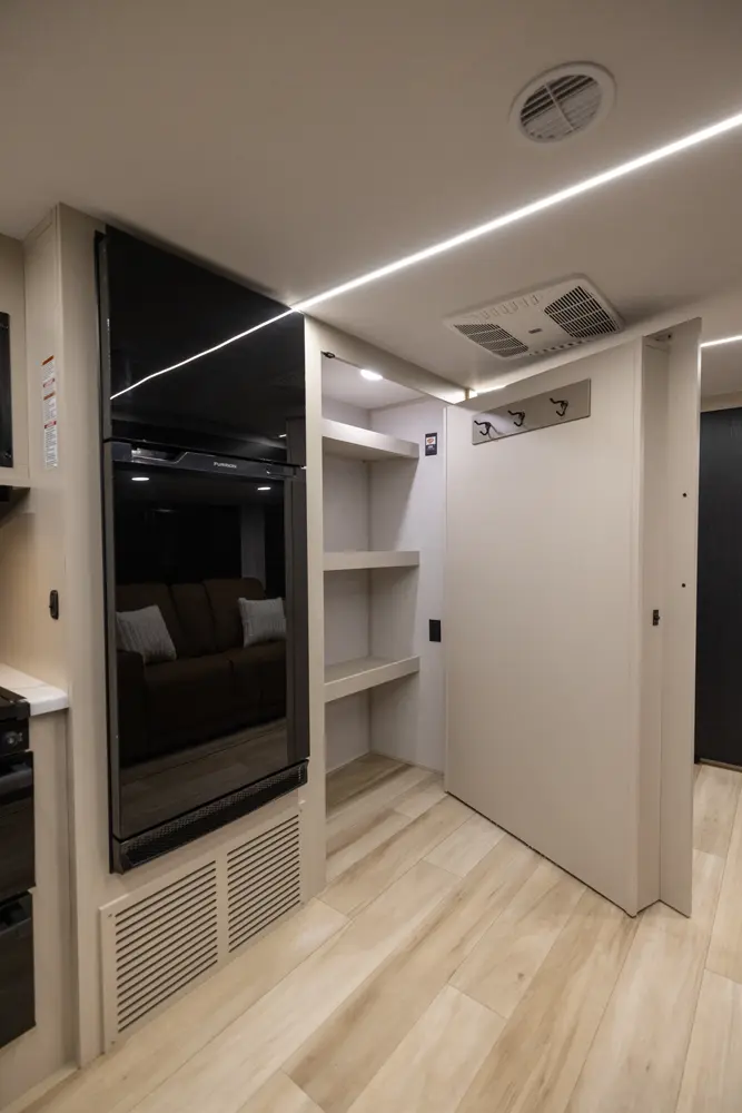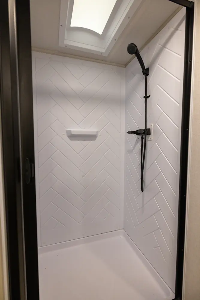 No corners were cut in the 25RBHL. The theater seat (facing the entertainment center) and full-sized dinette separate the best-in-class bathroom and bedroom. 36" wide sliding barn doors offer complete privacy, or the ability to open the 25RBHL up from front to back. This camper also offers a refrigerator outside underneath the awning.