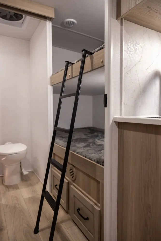The Rockwood Ultra Lite Travel Trailers 2918BH floorplan has two entries and one slide out. Exterior features include: fiberglass exterior and 24'5" awning. Interiors features include: bunk beds, front bedroom, pass through bathroom and bathroom and a half.