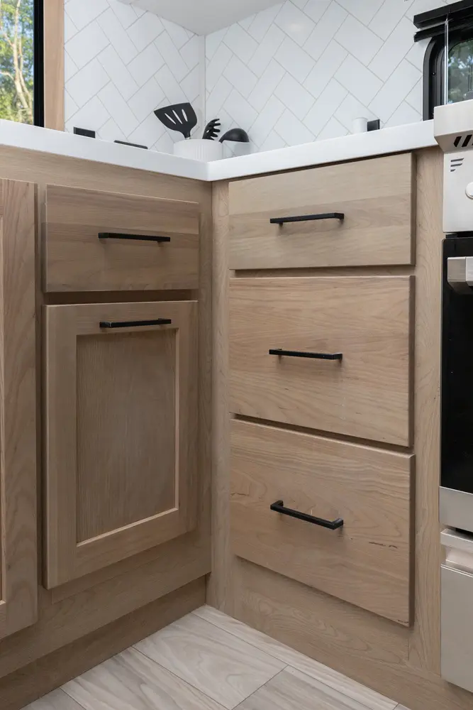 • Solid wood, square inset cabinet doors, painted or wood grain