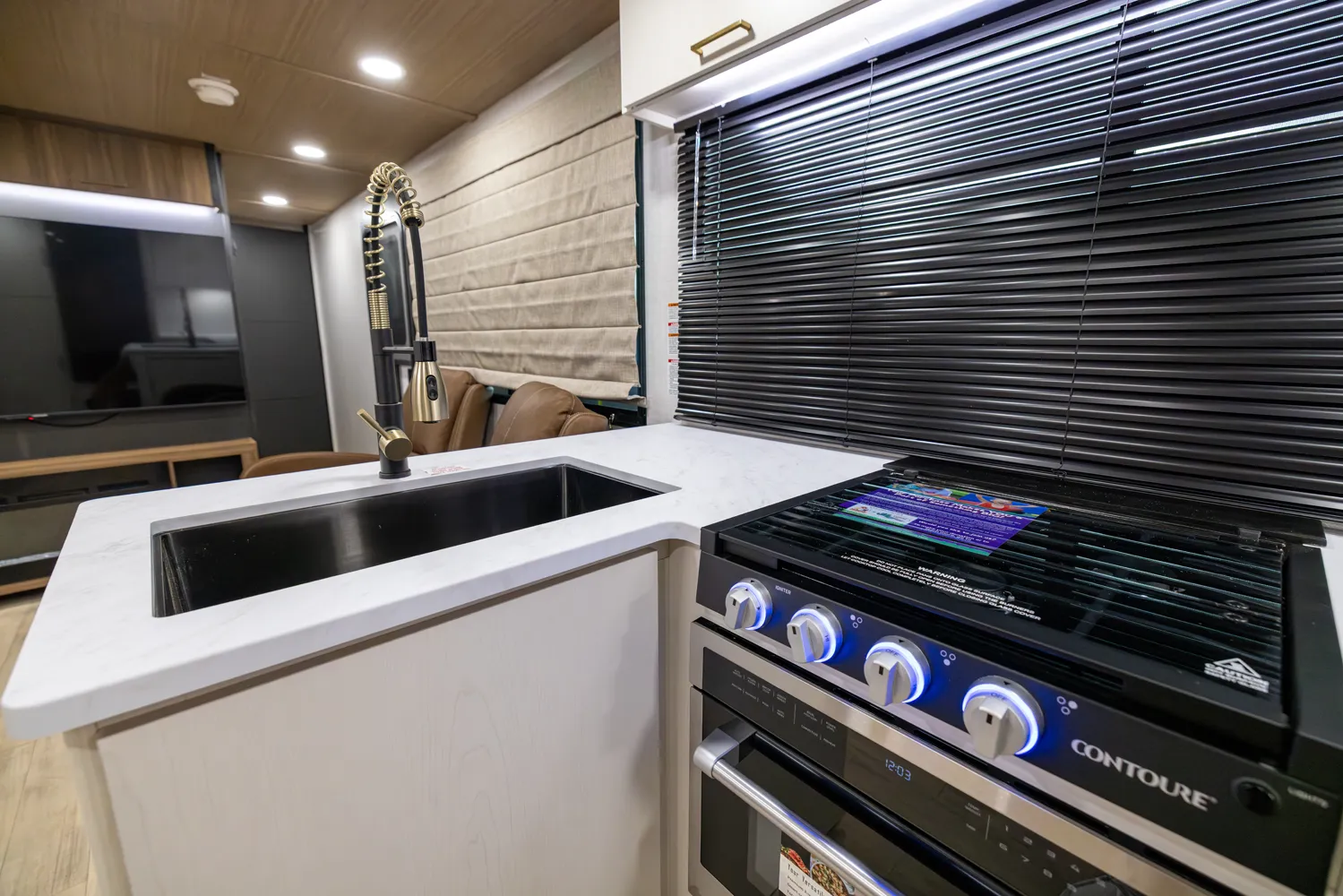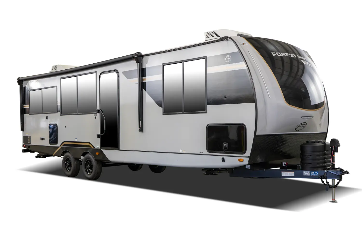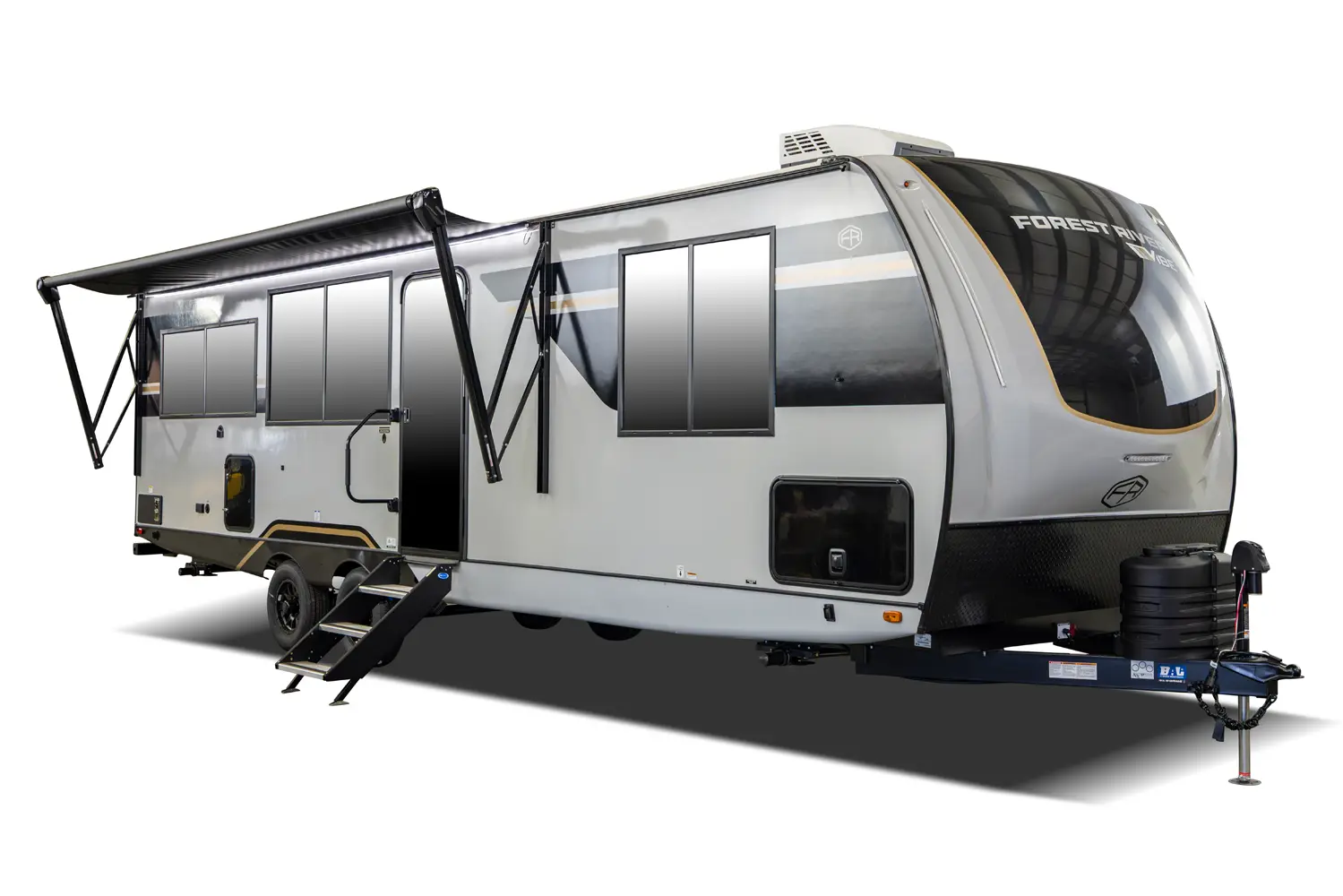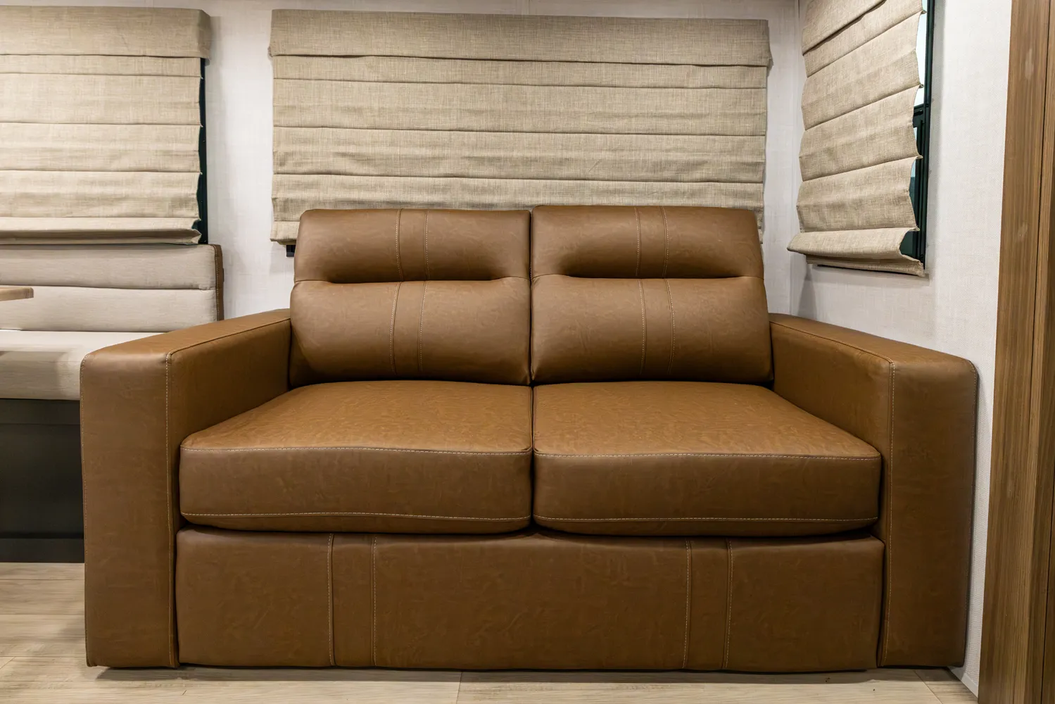 The 2600RK is a popular floorplan as we deliver a spacious rear kitchen with an ample amount of natural light and windows. This floorplan has a lot of energy focused on quality time with the family as the 2600RK comes complete with a 5-person dinette, tri-fold sofa (turns into bed), and two separate recliner chairs all within view of the kitchen. With a king bed and washer/dryer prep this lightweight coach offers more functional space than ever.